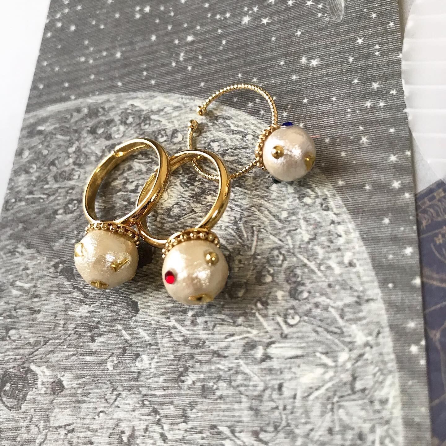 コットンパールにスタッズやカラーストーンを散りばめました。