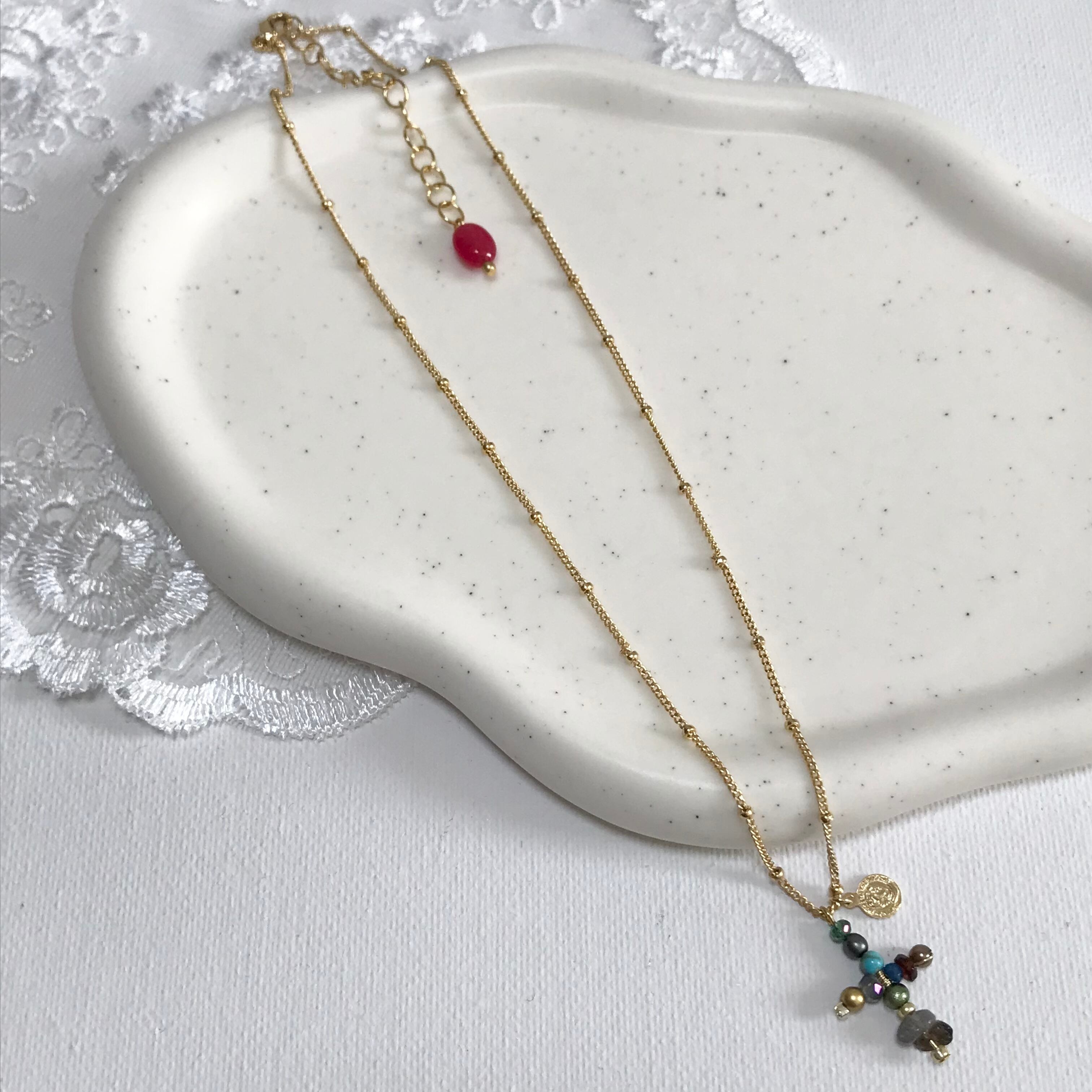 さまざまなパーツを組み合わせてクロスに仕立てました。
