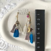 アシンメトリーで個性的、カラフルなタッセルもコーディネートのアクセントになります。