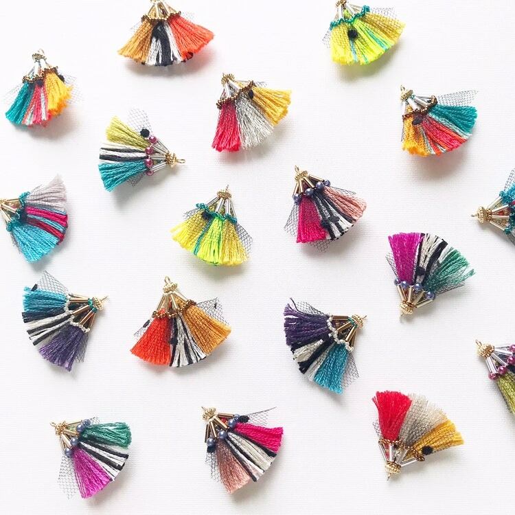 タッセル、チュール、ビーズでできたフリルのようなアクセサリー